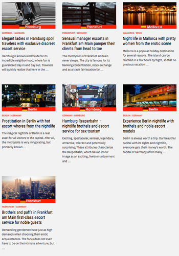 Every Escort Service on Holiday has its girls in the nightlife in the disco or in bars. But contact persons (such as the bartender) also like to act as intermediaries and convey the gentlemen of creation to the most beautiful call girls in the world. Connections are the key to happiness. As a stranger, however, you can quickly find out how things are going. You just have to have the right nose and if you want to have sex, her nose puts her on the right track. Young, beautiful escort models and the gentleman gets what he strives for so much. His life consists of new encounters with very young prostitutes. And when the demand is high, there is a correspondingly huge supply. Immerse yourself in a colorful, dazzling world full of for sale women and transsexuals. You are guaranteed not to want to fly home again, this time could be so exciting for you. Unfamiliar skin, something special, your most intimate wishes could come true. Are you already feeling tingly with joy?